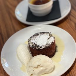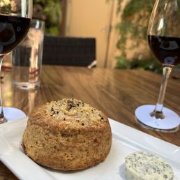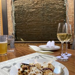 Great outdoor setting, so pleasant under the tree with the koi pond and fountain. Great selection of wine flights with everything from Bubbles, international whites and various reds. You can even customize flights of your own with the 3 oz pours which I did switching out the Chardonnay for a sancere. Lots of options food wise, we had the cod, short rib Octopus, beet salad and garlic noodles. Loved everything except the noodles which looked more like a creamy pasta and left a strong garlic taste in my mouth. For dessert we shared the blonde which was huge served warm with ice cream in a little cast iron pan. Recommend sharing as it is really big. Service was great and personable with waters always tended to.
